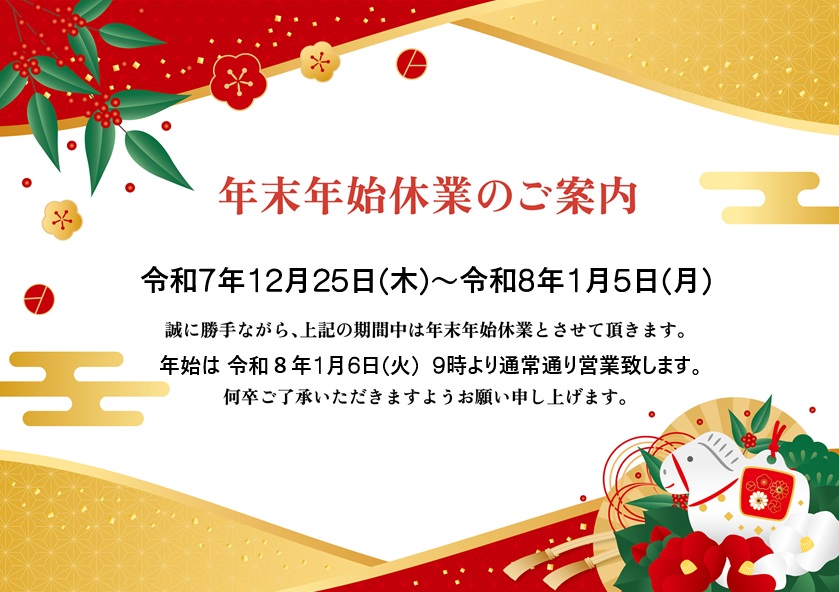 弊社では、誠に勝手ながら下記日程を冬季休業とさせていただきます。
